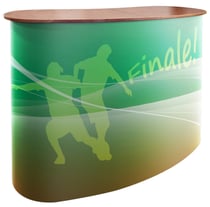 Silmatorkav efektne pop-up konstruktsioonil baseeruv esitlus- ja messilaud. Graafika trükitakse pop-up filmile, mis tagab suurepärased värvid ja ilusa välimuse, mida võimendab ka kvaliteetne läikiv või puidust lauaplaat (tamm).