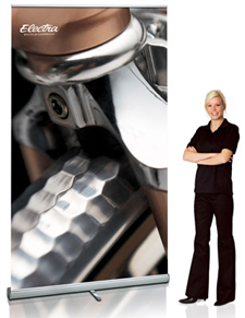 Eriti lai ja kõrge roll-up esitlusstend (reguleeritav kõrgus 160 kuni 225 cm). Stendi väike kaal (kõigest 5,8 kg), tugijalg ja teleskoopvarras teevad kasutamise väga lihtsaks. Stendi paigaldus võtab ühel inimesel aega pool minutit. Sobib suurepäraselt väiksemaks reklaamseinaks. Tippkvaliteet! Tänu efektsele välimusele kõlbab nõudlikku keskkonda.